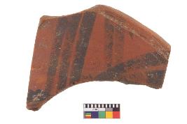 | Description / विवरण | Specimen of black on red ware with decorative geometric Linear Pattern painting. |