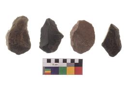 | Description / विवरण | There are n-4 of utilized flake cores. There are multidirectional irregular dominant scar pattern on both dorsal and ventral face of the cores. Some of them bulge of percussion and some are flat flake cores. |