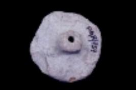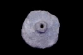 It is a wheel with broken edges, uneven in shape, edges are slightly chipped off, perforation with hub on middle and rough surface.