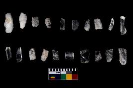 | Description / विवरण | There are n-20 of microliths, all of them are quartz. Some of them are partially broken. They show variation in colour, size and shape. Some of them are blunted back blades, points, triangles, trapezes, crescent and truncated blades. |