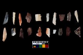 | Description / विवरण | There are n-20 of microliths, among them 6 are quartz, and 14 are of chert. Some of them are partially broken. They show variation in colour, size and shape. Some of them are blunted back blades, points, triangles, trapezes, crescent and truncated blades. |