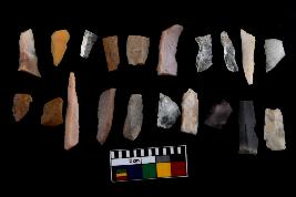 | Description / विवरण | There are n-20 of microliths, among them 5 are quartz, and 15 are of chert. Some of them are partially broken. They show variation in colour, size and shape. Some of them are blunted back blades, points, triangles, trapezes, crescent and truncated blades. |