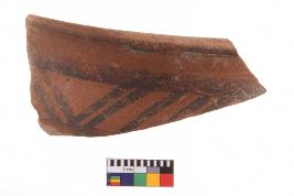 | Description / विवरण | Specimen of black on red ware with decorative geometric Linear Pattern painting. |