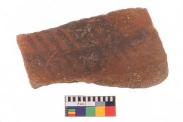 | Description / विवरण | Specimen of black on red ware with decorative black pigment |