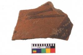 | Description / विवरण | Specimen of black on red ware with decorative black pigment. |