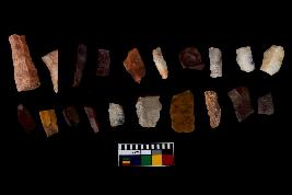 | Description / विवरण | There are n-20 of microliths, among them 5 are quartz, and 15 are of chert. Some of them are partially broken. They show variation in colour, size and shape. Some of them are blunted back blades, points, triangles, trapezes, crescent and truncated blades. |