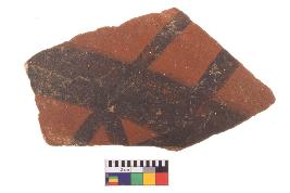 | Description / विवरण | Specimen of black on red ware with decorative black pigment. |