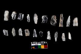 | Description / विवरण | There are n-20 of microliths, all of them are quartz. Some of them are partially broken. They show variation in colour, size and shape. Some of them are blunted back blades, points, triangles, trapezes, crescent and truncated blades. |