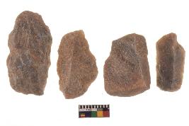 | Description / विवरण | There are n-4 of utilized flake cores. There are multidirectional irregular dominant scar pattern on both dorsal and ventral face of the cores. Some of them bulge of percussion and some are flat flake cores. |