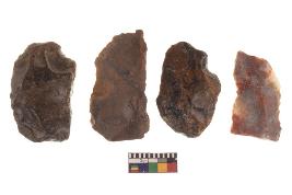 | Description / विवरण | There are n-4 of utilized flake cores. There are multidirectional irregular dominant scar pattern on both dorsal and ventral face of the cores. Some of them bulge of percussion and some are flat flake cores. |
