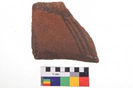 | Description / विवरण | Specimen of black on red ware with decorative black pigment. |