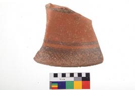| Description / विवरण | Specimen of black on red ware with decorative geometric Net Pattern painting. |