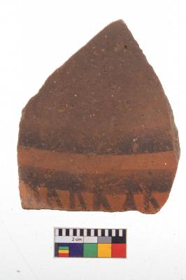 | Description / विवरण | Specimen of black on red ware with decorative geometric Linear Pattern painting. |
