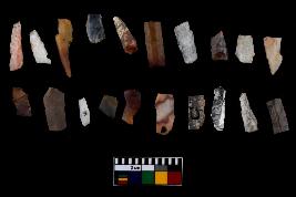 | Description / विवरण | There are n-20 of microliths, among them 5 are quartz, and 15 are of chert. Some of them are partially broken. They show variation in colour, size and shape. Some of them are blunted back blades, points, triangles, trapezes, crescent and truncated blades. |