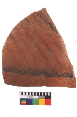 | Description / विवरण | Specimen of black on red ware with decorative black pigment. |
