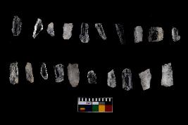 | Description / विवरण | There are n-20 of microliths, all of them are quartz. Some of them are partially broken. They show variation in colour, size and shape. Some of them are blunted back blades, points, triangles, trapezes, crescent and truncated blades. |