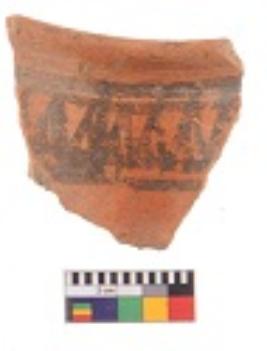 | Description / विवरण | Specimen of black on red ware with decorative black pigment. |