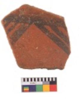 | Description / विवरण | Specimen of black on red ware with decorative geometric Linear Pattern painting. |