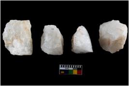 | Description / विवरण | A specimen of a fluted core having several broad fluted marks indicating the detached blades from it |
