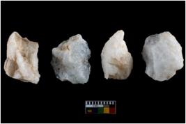 | Description / विवरण | A specimen of a fluted core having several broad fluted marks indicating the detached blades from it |