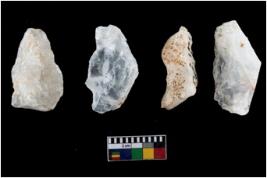 | Description / विवरण | Specimen of a fluted cores having several broad fluted marks indicating the detached blades from it. |