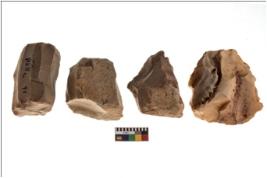| Description / विवरण | Specimen of a fluted cores showing impressions of blades removed from almost all the sides. |