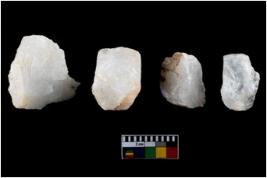 | Description / विवरण | A specimen of a fluted core having several broad fluted marks indicating the detached blades from it |