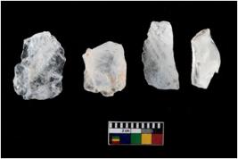 | Description / विवरण | Specimen of a fluted cores having several broad fluted marks indicating the detached blades from it. |