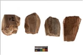 | Description / विवरण | Specimen of a fluted cores showing impressions of blades removed from almost all the sides. |
