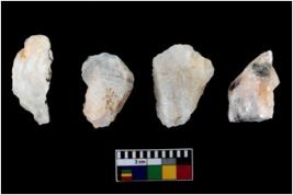 | Description / विवरण | Specimen of a fluted cores having several broad fluted marks indicating the detached blades from it. |