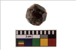 | Description / विवरण | A partially broken specimen of a gemstone garnet with rough surface, bevelled sides with octagonal cross-section. This particular object contains evidence of chipping. |