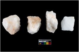 | Description / विवरण | Specimen of a fluted cores having several broad fluted marks indicating the detached blades from it. |