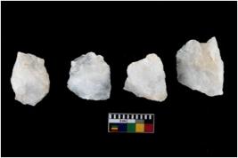 | Description / विवरण | Specimen of a fluted cores having several broad fluted marks indicating the detached blades from it. |