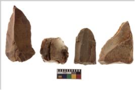 | Description / विवरण | Specimen of a fluted cores showing impressions of blades removed from almost all the sides. |