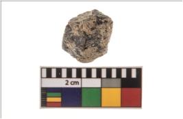 | Description / विवरण | A partially broken specimen of a gemstone garnet with rough surface, bevelled sides with hexagonal cross-section. This object contains evidence of chipping. |