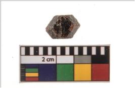 | Description / विवरण | A complete specimen of a gemstone garnet with rough surface, bevelled sides with hexagonal cross-section. This object contains evidence of chipping. |