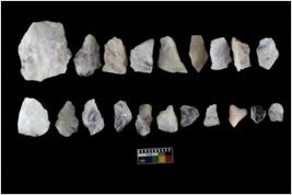| Description / विवरण | There are n-20 of intact flake cores made up of Quartz. Some of them have bulge of percussion and some are flat flakes. |