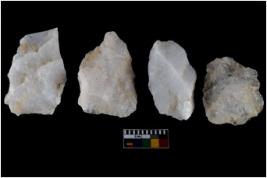 | Description / विवरण | There are n-4 of intact utilized flake cores made up of Quartz. Some of them have bulge of percussion and some are flat flakes. |