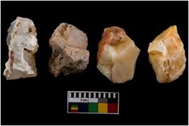 | Description / विवरण | Specimen of a cores with several broad fluted marks. The reverse bulb and platform can be seen. The flake scars are seen on all sides. |