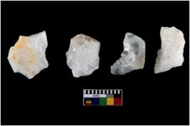 | Description / विवरण | Specimen of a fluted cores having several broad fluted marks indicating the detached blades from it. |