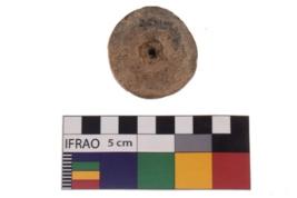 | Description / विवरण | A specimen of a wheel with broken edges and scratch marks on one side near perforation, It has rough surface and reddish colour and it is well-fired and eroded. |