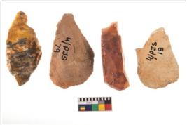 | Description / विवरण | Four flakes; most of them are tapering at one end with few having sharp edges. |