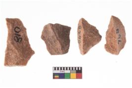 | Description / विवरण | A specimen of flake tool with prominent flaking marks. It made up of a short flakes with sides trimmed. It is rectangular in shaped. |