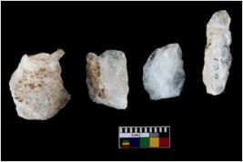 | Description / विवरण | Specimen of a fluted cores having several broad fluted marks indicating the detached blades from it. |