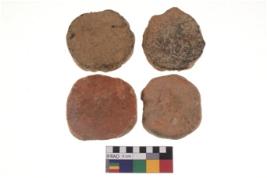 | Description / विवरण | There are n-4 plain pottery discs without perforation. Their colour varies from dark to light red. These discs have eroded edges. |