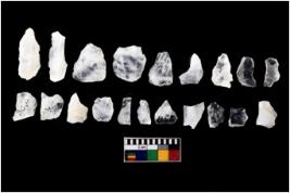 | Description / विवरण | There are n-20 of intact flake cores made up of Quartz. Some of them have bulge of percussion and some are flat flakes. |