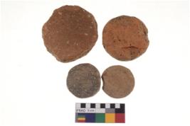 | Description / विवरण | There are n-4 plain pottery discs without perforation. Their colour varies from dark to light red. These discs have eroded edges. |
