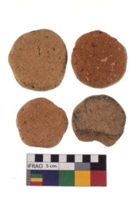 | Description / विवरण | There are n-4 plain pottery discs without perforation. Their colour varies from dark to light red. These discs have eroded edges. |