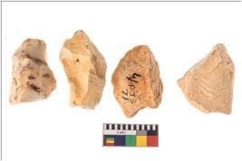 | Description / विवरण | Four flakes; most of them are tapering at one end with few having sharp edges. |