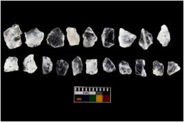 | Description / विवरण | There are n-20 of intact flake cores made up of Quartz. Some of them have bulge of percussion and some are flat flakes. |